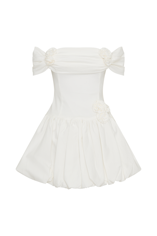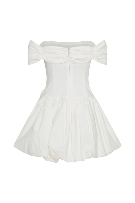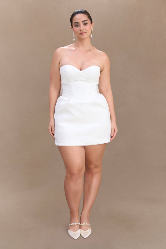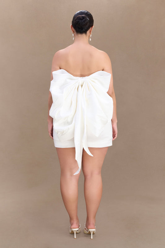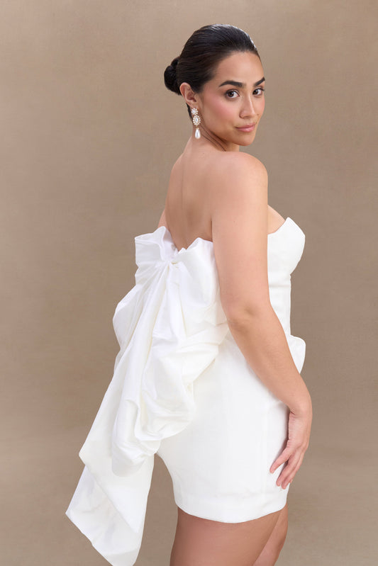 Suzette Taffeta Bow Mini Dress - White