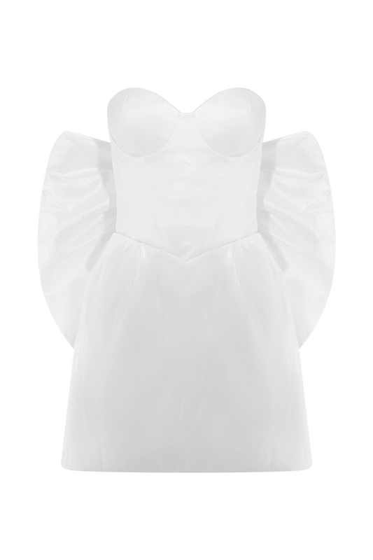 Taffeta Bow Mini Dress - White