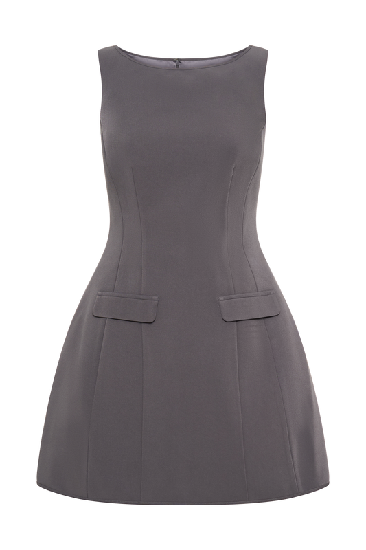 Evanna Sleeveless Suiting Mini Dress - Charcoal Grey