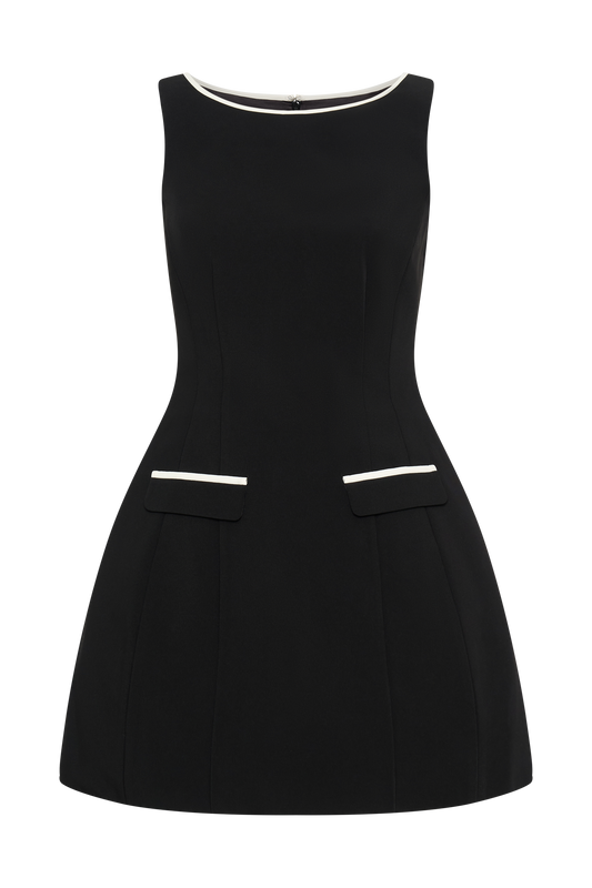 Evanna Sleeveless Contrast Suiting Mini Dress - Black