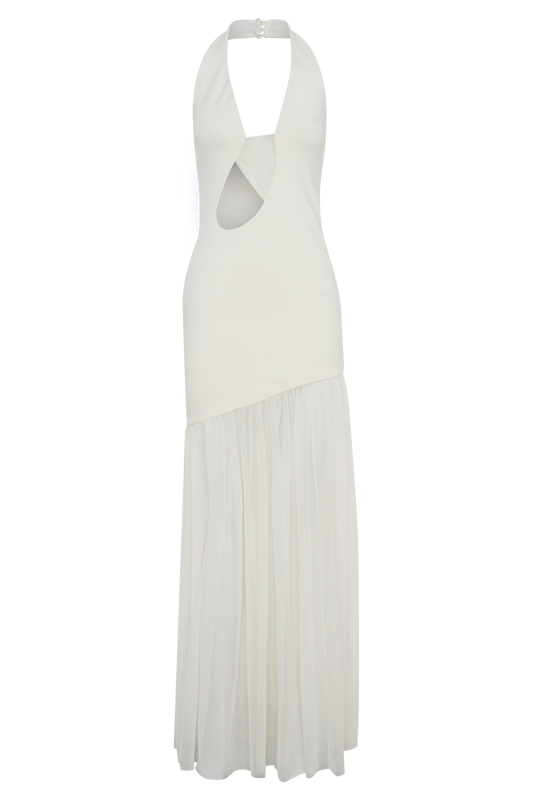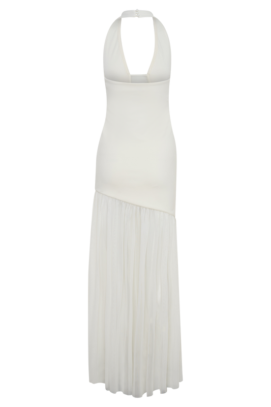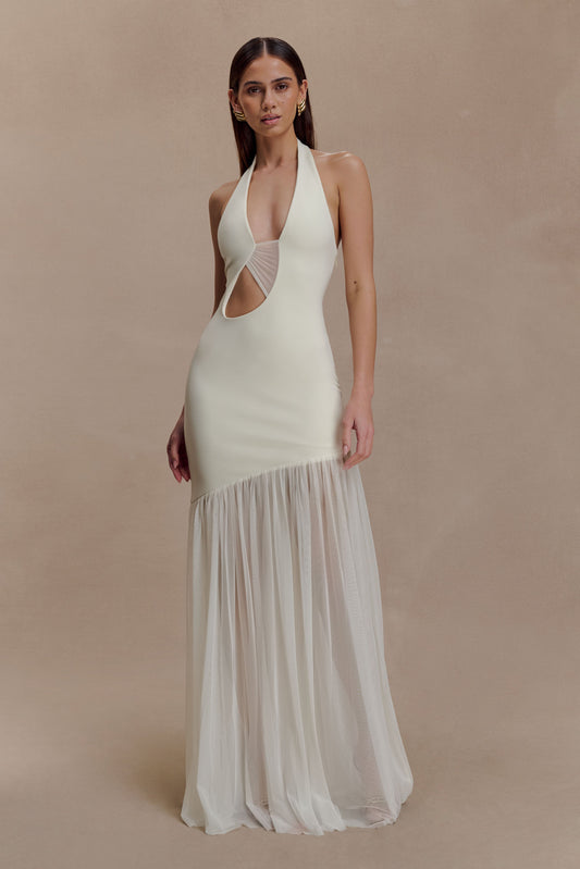 Aubree Crepe And Mesh Maxi Dress - Ivory