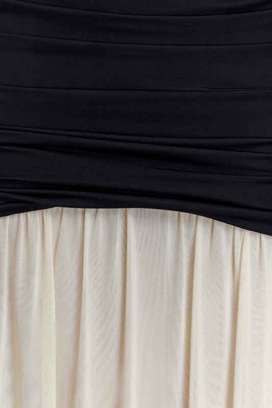 Slinky And Mesh Halter Maxi Dress - Black/White