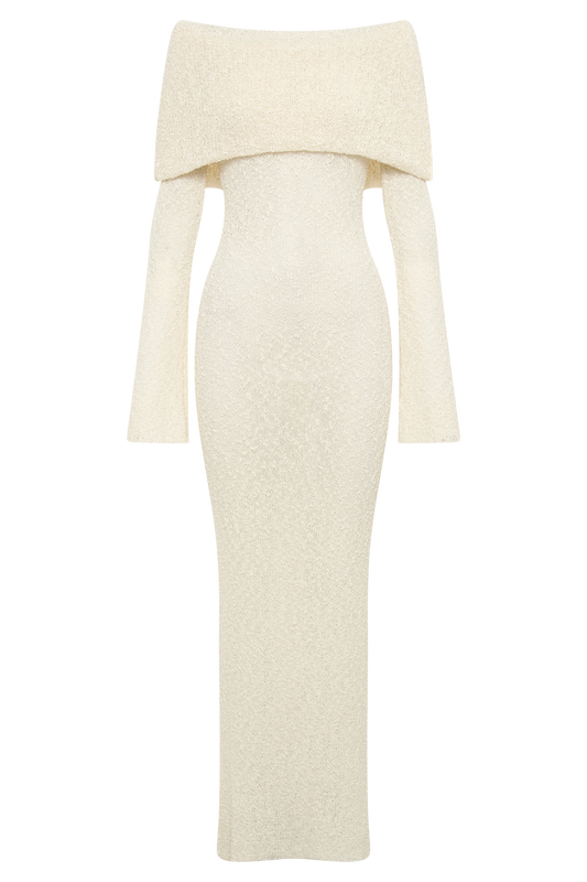Marisol Off Shoulder Boucle Maxi Dress - Ivory