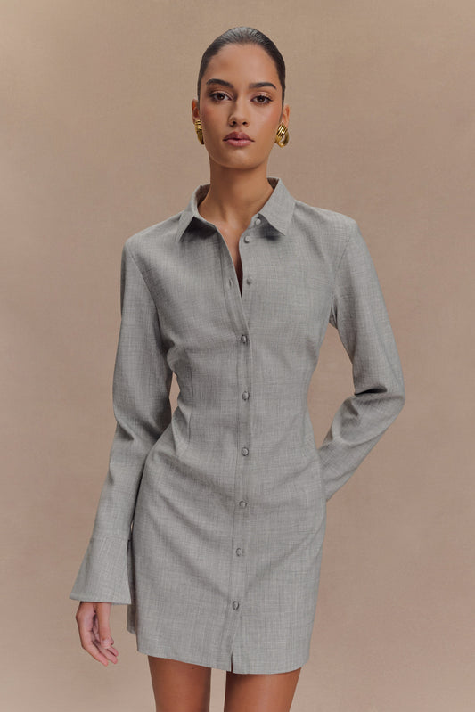 Dorian Fitted Shirt Mini Dress - Charcoal Marle