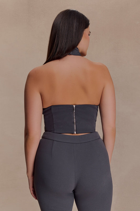 Dorian Twist Shoulder Mini Dress - Charcoal Marle
