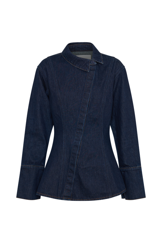 Jericho Asymmetrical Denim Shirt - Indigo Blue