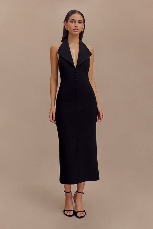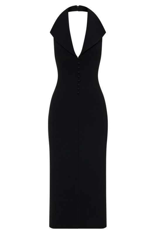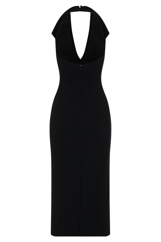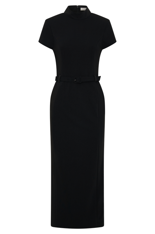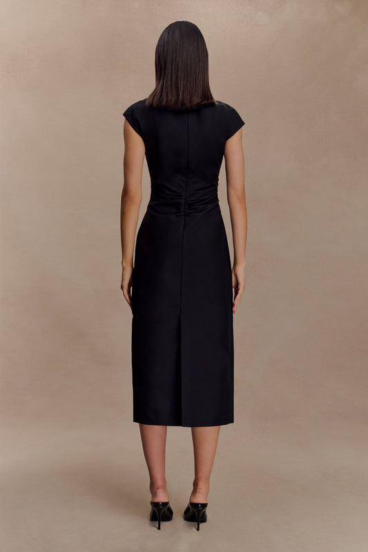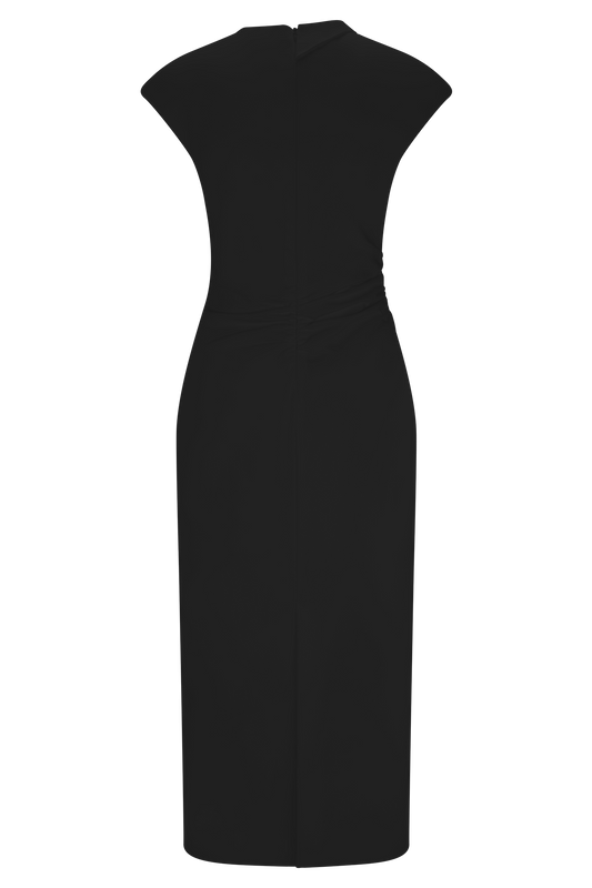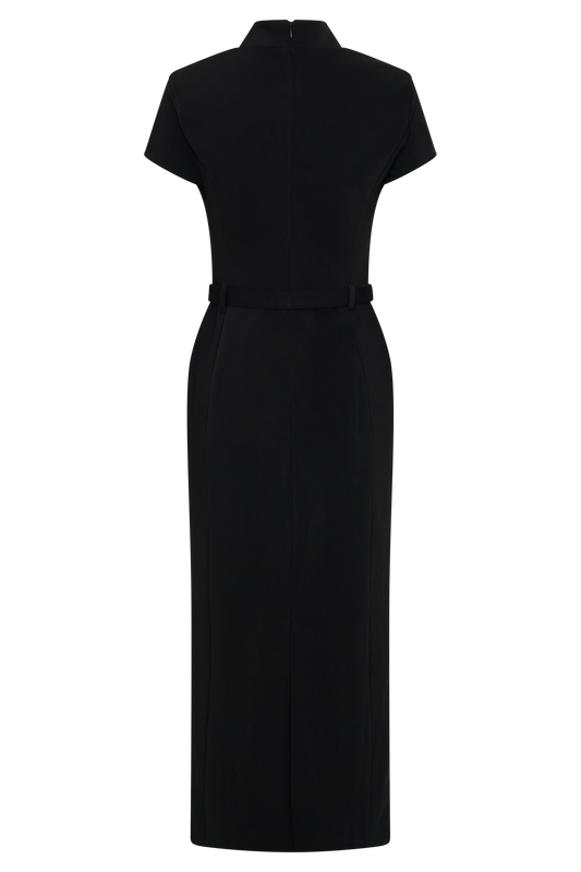 Arwyn Short Sleeve Crepe Midi Dress - Black