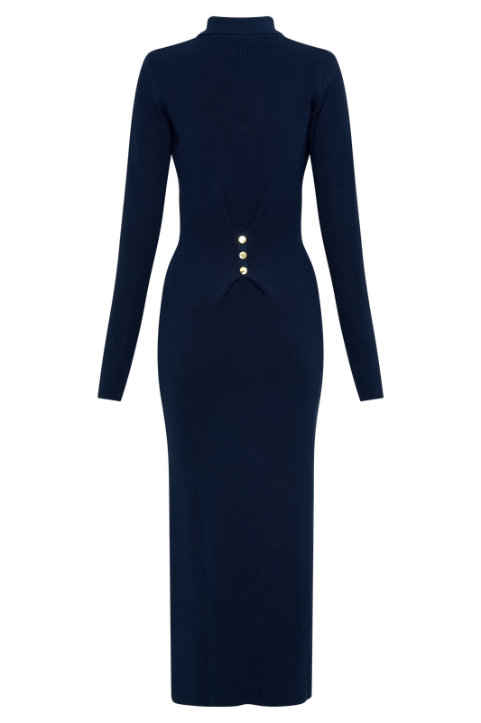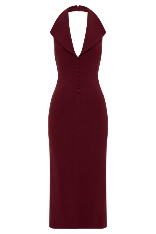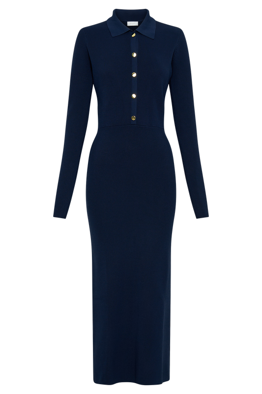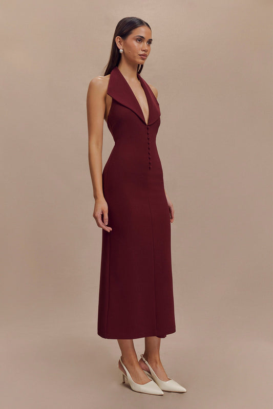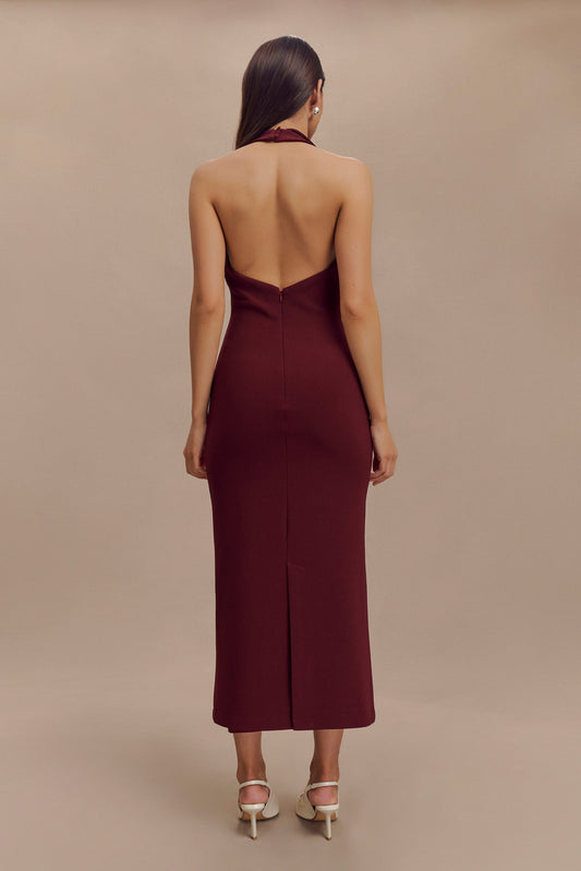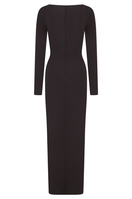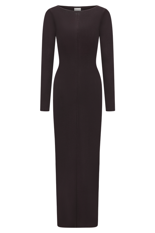 Cleona Merino Wool Ribbed Long Sleeve Maxi Dress - Deep Chocolate