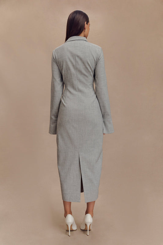 Dorian Fitted Shirt Midi Dress - Charcoal Marle
