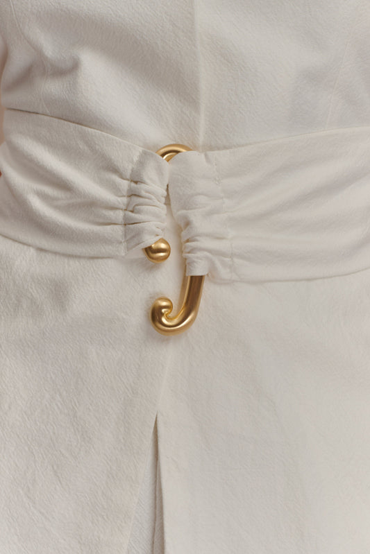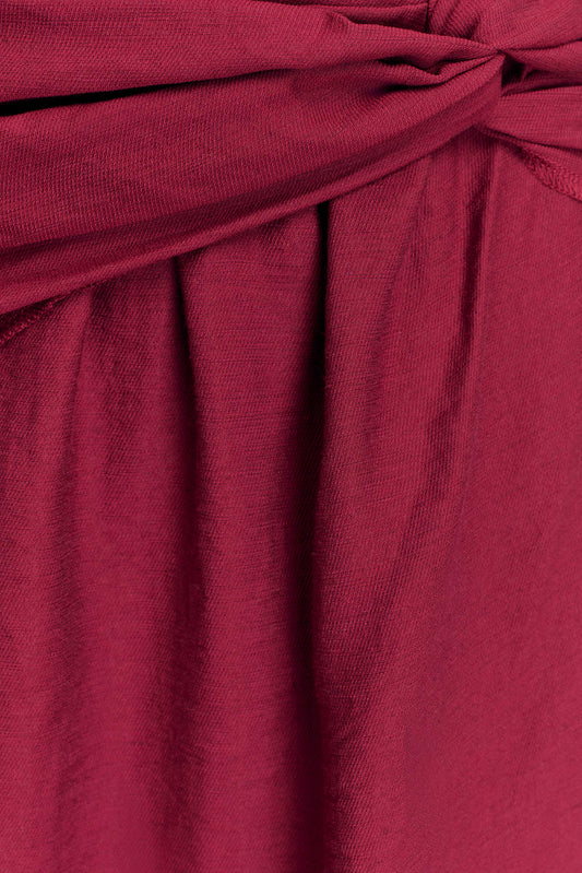 Scottie Gathered Linen Knot Maxi Skirt - Wine