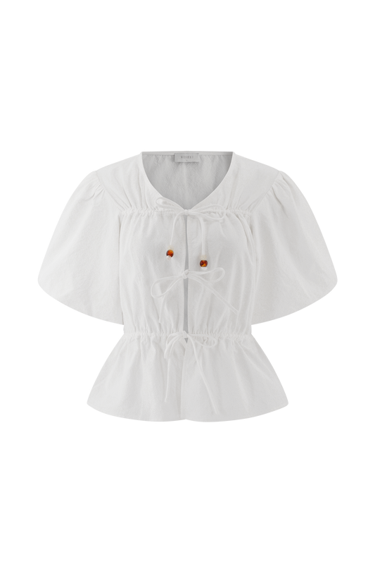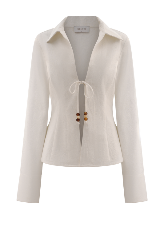 Annalee Cotton Beaded Tie Shirt - Dark Espresso