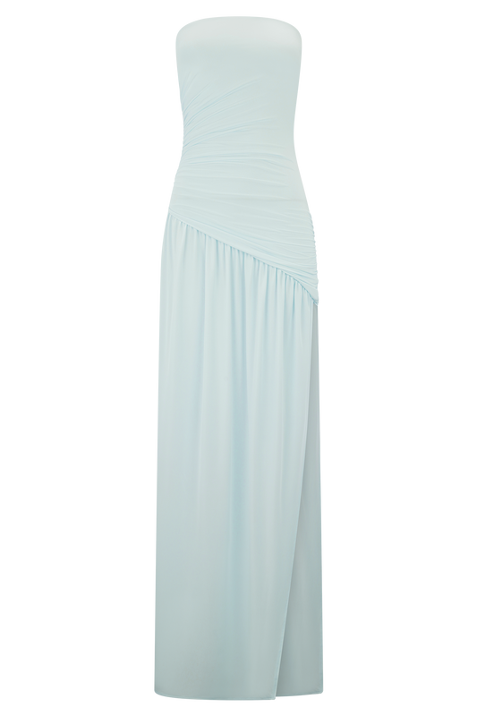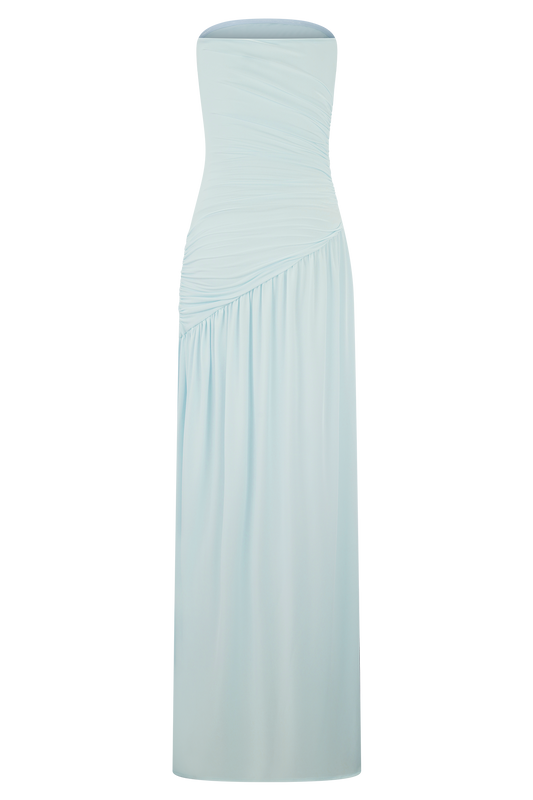 Raleigh Asymmetrical Slinky Midi Dress - Pale Blue