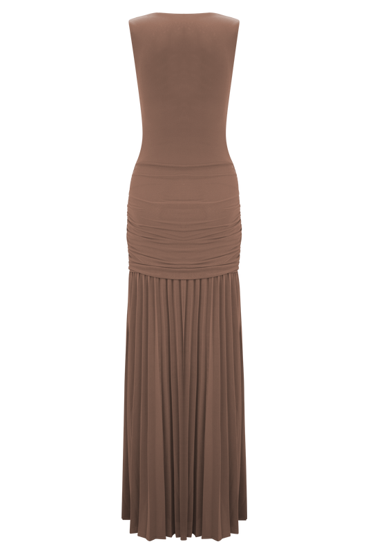 Chiffon And Mesh Maxi Dress - Dark Chocolate