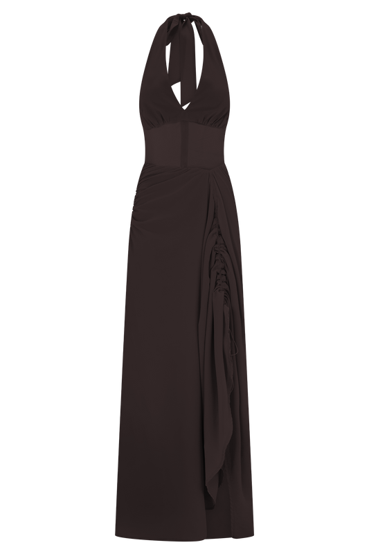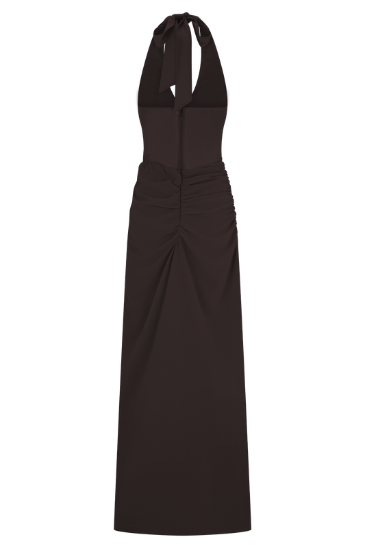 Dania Cowl Neck Slinky Maxi Dress - Mocha Mousse