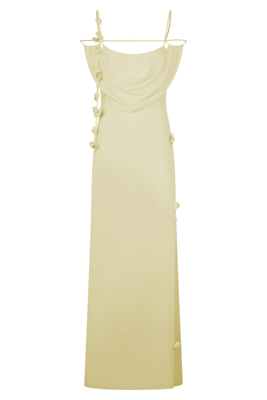 Rosalie Floral Chiffon Maxi Dress - Pastel Lemon