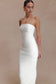 The JIANNA Strapless Mesh Maxi Dress is the embodiment of sleek, structured sensuality. Designed with a straight strapless neckline and fully gathered mesh detailing throughout, it creates a soft, contouring effect that flatters every curve. Internal boning provides subtle structure and support, while full lining ensures a smooth, sculpted finish. Completed with a back zipper closure and leg opening for ease of movement, this bodycon silhouette delivers timeless allure with modern refinement.