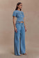 The MARGE Fitted Denim Short Sleeve Top is a modern essential with structured detailing. Featuring a round neckline and a functional button-front closure, it’s shaped with front and back yokes for definition. Short sleeves are finished with cuffed hems, while front pockets and a rounded hemline balance utility with a refined edge. Crafted in denim and cut to a fitted silhouette, this top is versatile enough to wear solo or layered with tailoring.