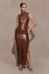 The VERONICA Sequin Midi Dress is designed to make a dazzling entrance with every step. Featuring a grown-on neckline and a sleek, sleeveless silhouette, this bodycon dress hugs your curves in all the right places. The bold leopard sequin pattern adds a glamorous twist, while the leg split and back vent offer ease of movement and a hint of allure. A centre-back zip completes the look for a flawless fit. Perfect for any evening affair, this dress ensures you’ll sparkle from every angle.